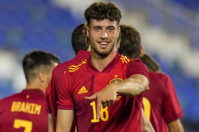 上周四,同一支球队在欧青赛半决赛负于葡萄牙,未能连续第3次闯入决赛。2天后,他们刚从斯洛文尼亚返回西班牙,解散回家,就接到了足协的紧急电话要求重新集合,打这场比赛。由于布斯克茨被检测出新冠阳性,西班牙国家队全员处于隔离状态,接受密集检测。为了不让受邀的立陶宛白跑一趟,只能让青年队坐东代陪。不过这晚,他们的身份可不是国青队,而是堂堂正正的成年国家队。这也创下一项历史纪录,11名首发球员中有10名完成了国家队处子秀,只有布里安·希尔例外。